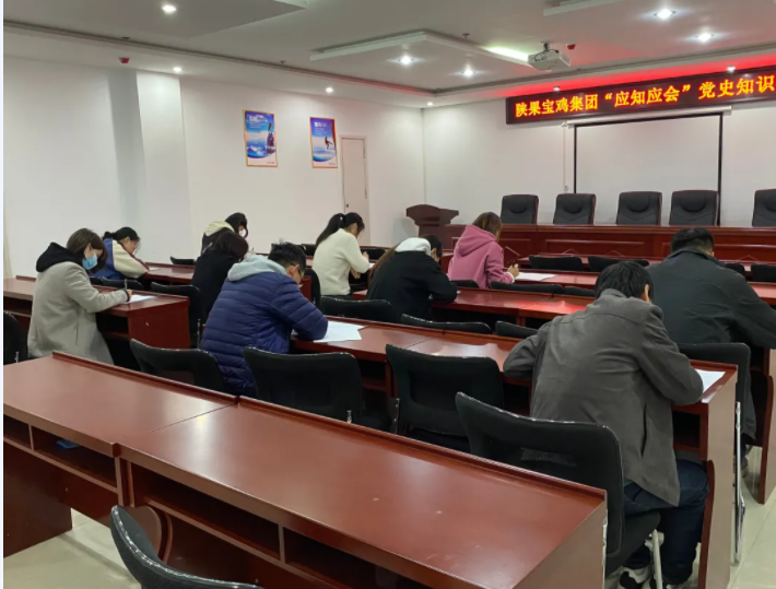 点击量:101863近日,宝鸡集团组织机关全体干部职工开展了“党史学习教育应知应会”知识竞赛活动。竞赛围绕中国共产党史、新中国史、改革开放史、社会主义发展史以及时政热点等内容,共50道题,总分100分,采取闭卷形式。通过测试,百分之九十的干部职工成绩在90分以上......